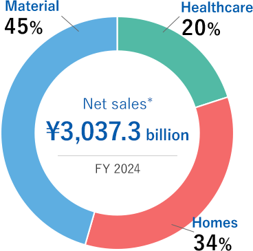 1972年4月、水島エチレンの生産を開始しました。第5代社長に就任した宮崎輝は、「衣食住の総合メーカー」という多角化のビジョンを掲げ、若手と10年先20年先の事業を模索しました。自社で基礎原料から化学製品を生産するために工場建設を決定、当時の年間売上高に匹敵するともいわれた約1500億円が投じられました。また同年、住宅事業では「へーべルハウス™Dシリーズ」を発売し、プレハブ住宅市場を牽引しました。