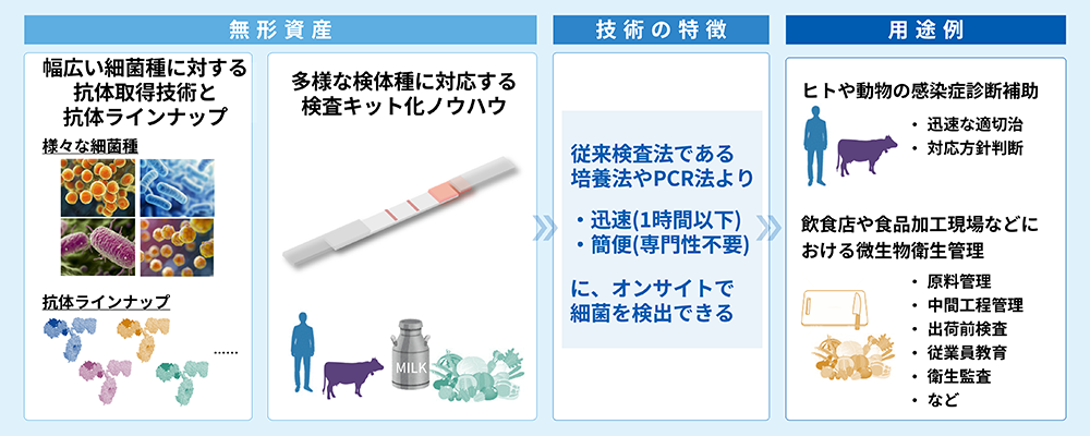 独自の細菌検出抗体技術と検査キット化ノウハウにより、新しい検査技術を実現。