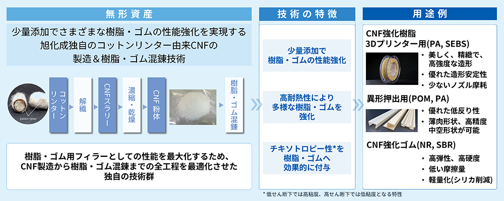 少量の添加で強度や摩擦性能にすぐれた樹脂・ゴムを実現できるセルロースナノファイバー(CNF)技術を提供