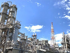 直メタ法とは、イソブチレンを出発原料とし、メタクロレインを一段で酸化・エステル化反応させることによりMMA(メタクリル酸メチル)を合成する旭化成独自の製法であり、川崎製造所にて1998年、同技術を用いたMMAの製造を開始しました。