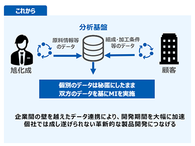 また、秘密計算を活用し、相互のデータを秘匿したまま他社とデータ連携・分析を行うことができる「共創型MI」など、個社では成し遂げられない革新的な製品開発を目指し、企業間の壁を越えた取り組みを進めています。